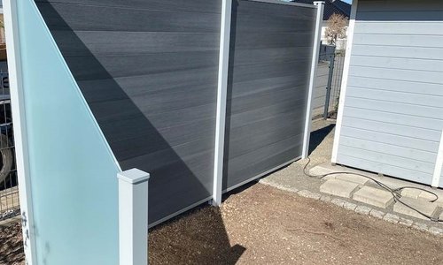 System WPC Sichtschutz, Platinum mit Alupfosten einbetoniert |