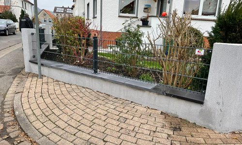 Doppelstabmatten schwer feuerverzinkt und anthrazit beschichtet mit Pfosten 60 x 40 mit Abdeckleistenmit Fussplatte |