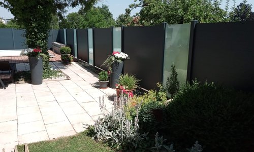 Alu Varioprofil glatt mit Aluminiumpfosten vierkant 85 x 85 mm einbetoniert |