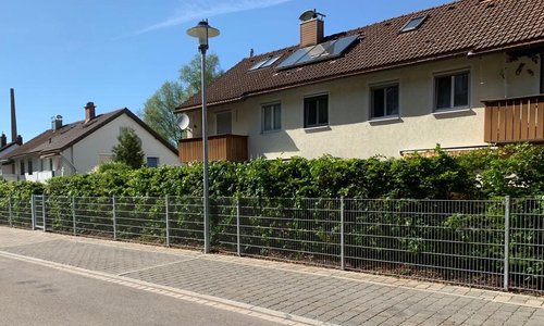 Doppelstabmatten schwer verzinkt mit Pfosten 40x60 verzinkt mit Abdeckleisten einbetoniert |
