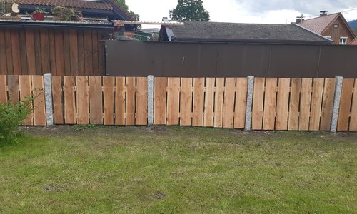 Holzsichtschutzzaun mit stehenden Lärchebrettern an Granitpfosten