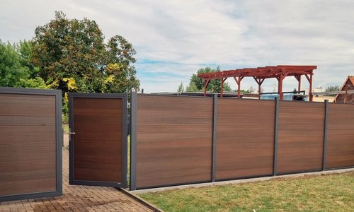 System WPC Sichtschutz, Platinum mit Alupfosten einbetoniert |