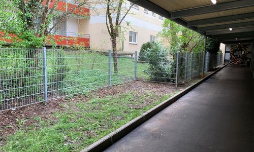 Doppelstabmatten schwer verzinkt mit Pfosten 40x60 verzinkt mit Abdeckleisten einbetoniert |