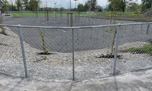Diagonalgeflecht verzinkt mit Rohrpfosten verzinkt einbetoniert |