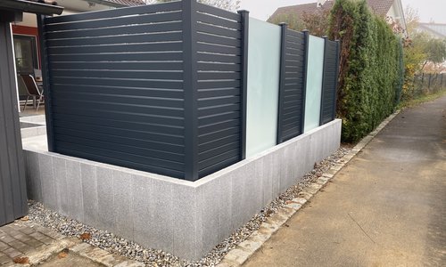 Alu Systemprofil in anthrazit mit Aluminiumpfosten vierkant 90 x 90 mm in Aussparung |