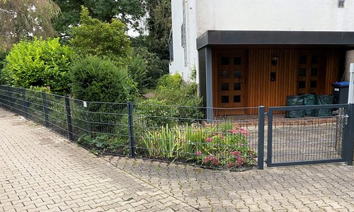 Fence type: | Deko-Doppelstabmatten Wiesbaden anthrazit mit Pfosten 40x60 anthrazit mit Abdeckleisten einbetoniert |