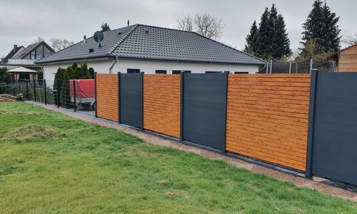 Aluminium Sichtschutz anthrazit + Alu Rhombus in Holzoptik |