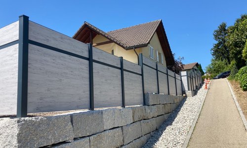 Projekt: | Aluminium-Sichtschutz im Holzdecor grau |