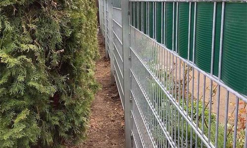 Doppelstabmatten schwer verzinkt mit Pfosten 40x60 verzinkt mit Abdeckleisten einbetoniert |