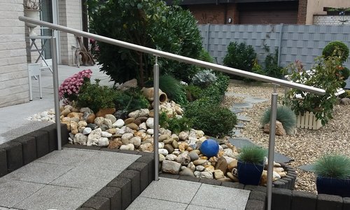 Edelstahl Handlauf geneigt einbetoniert |