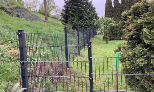Doppelstabmatten leicht feuerverzinkt und anthrazit beschichtet mit Pfosten Vario einbetoniert |