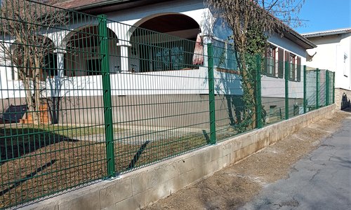 Doppelstabmatten leicht vorverzinkt und grün beschichtet mit Pfosten 40x60 mit Abdeckleistenmit Fussplatte |