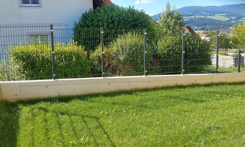 Doppelstabmatten schwer vorverzinkt und anthrazit beschichtet mit Pfosten Vario einbetoniert |