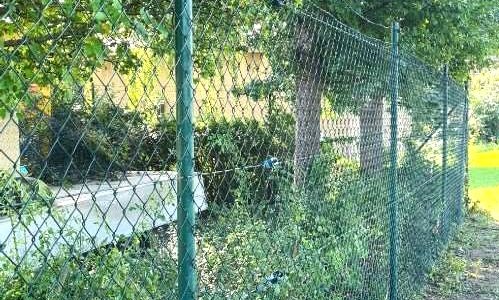 Diagonalgeflecht grün mit Rohrpfosten stabil grün einbetoniert |