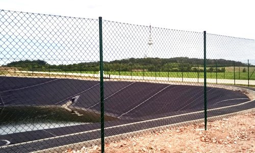 Diagonalgeflecht grün mit Rohrpfosten stabil grün einbetoniert |