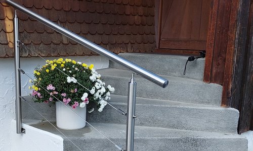 Edelstahl Handlauf geneigt mit Fussplatte |