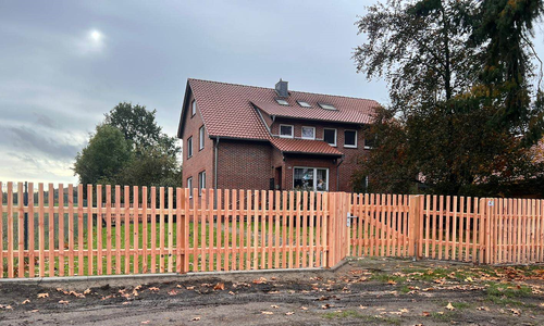 Lärchenzaun gerade mit Lärchenvierkantpfosten |