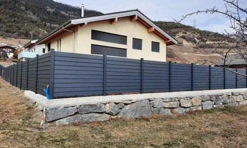 Alu Systemprofil in anthrazit mit Aluminiumpfosten vierkant 90 x 90 mm in Aussparung |