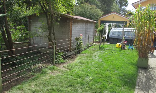 Fence type: | Drahtseilzaun mit Edelstahlpfosten einbetoniert |