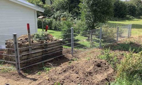 Doppelstabmatten leicht verzinkt mit Pfosten 40x60 verzinkt mit Abdeckleisten einbetoniert |