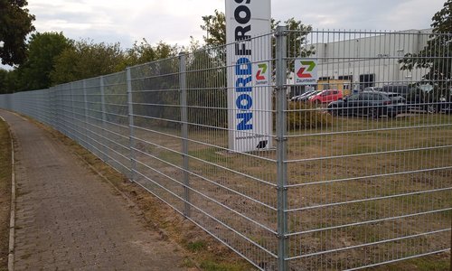 Doppelstabmatten schwer feuerverzinkt und anthrazit beschichtet mit Pfosten Vario einbetoniert |