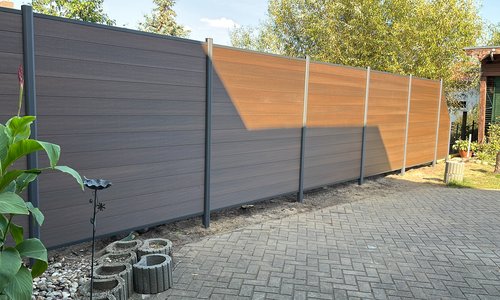 System WPC Sichtschutz, Platinum mit Alupfosten einbetoniert |