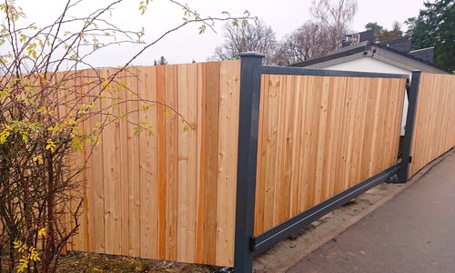 Projekt: | Schiebetor aus Aluminium mit Füllung aus sibirischer Lärche |