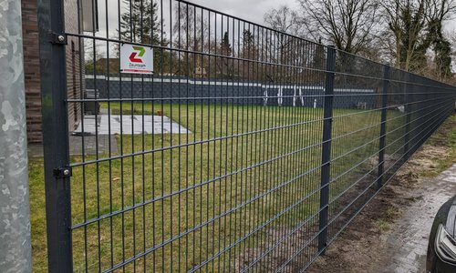 Doppelstabmatten leicht vorverzinkt und anthrazit beschichtet mit Pfosten Vario einbetoniert |