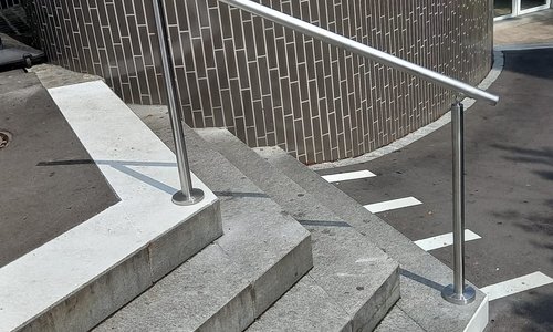 Edelstahl Handlauf geneigt mit Fussplatte |