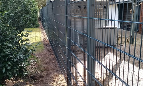 Fence type: | Doppelstabmatten schwer vorverzinkt und anthrazit beschichtet mit Pfosten 60 x 40 mit Abdeckleisten einbetoniert |