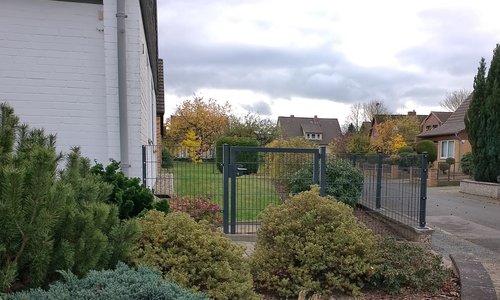 Fence type: | Doppelstabmatten leicht feuerverzinkt und anthrazit beschichtet mit Pfosten Vario einbetoniert |