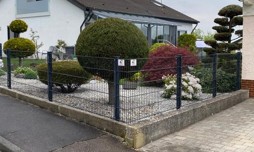 Fence type: | Doppelstabmatten schwer feuerverzinkt und anthrazit beschichtet mit Pfosten 60 x 40 mit Abdeckleisten einbetoniert |