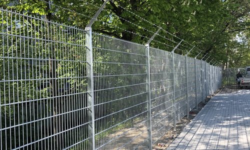 Doppelstabmatte schwer verzinkt mit Pfosten Vario verzinkt einbetoniert |