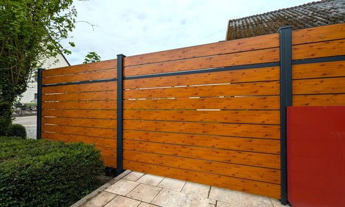 Projekt: | Aluminium-Sichtschutz in Holzoptik |