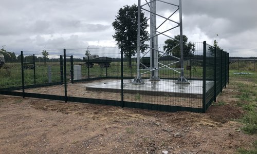 Doppelstabmatten schwer vorverzinkt und grün beschichtet mit Pfosten Vario einbetoniert |