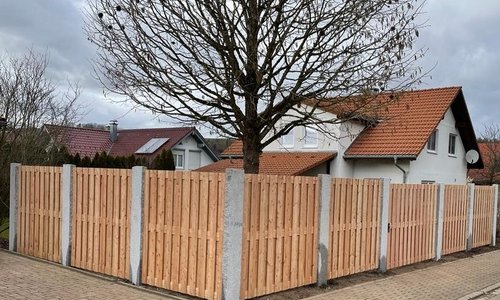 Lärchen-Holzsichtschutzzaun an Granitstelen
