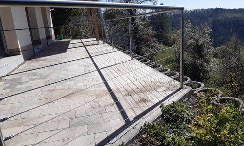 Drahtseilzaun mit Edelstahlpfosten einbetoniert |