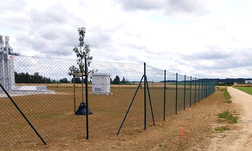 Diagonalgeflecht grün mit Rohrpfosten stabil grün einbetoniert |