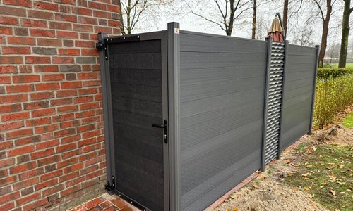 System WPC Sichtschutz, Platinum mit Alupfosten einbetoniert |