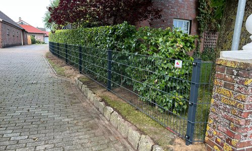 Doppelstabmatten leicht feuerverzinkt und anthrazit beschichtet mit Pfosten Vario einbetoniert |