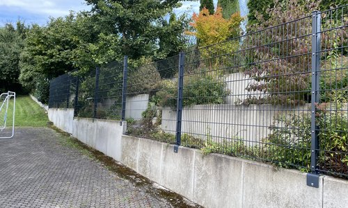 Doppelstabmatten schwer feuerverzinkt und anthrazit beschichtet mit Pfosten 60 x 40 mit Abdeckleistenmit Fussplatte |