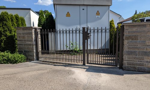 Das einflügelige Klassikzaun-Tor mit anschließendem sonderangefertigten Zaunfeld bietet eine stilvolle und funktionale Lösung für die optimale Abgrenzung Ihres Grundstücks, speziell zum Stromhäuschen. In edler Sonderanfertigung gefertigt, besticht das Tor durch kunstvoll gestaltete C-Ornamente und Schmuckmangetten, die ihm eine klassische und elegante Ausstrahlung verleihen. Das Tor und das dazugehörige Zaunfeld bestehen aus feuerverzinktem Stahl und sind mit einer strapazierfähigen pulverbeschichteten Oberfläche versehen. Diese Technik garantiert nicht nur eine außergewöhnliche Langlebigkeit und Widerstandsfähigkeit gegenüber Witterungseinflüssen, sondern sorgt auch für eine besonders edle Optik, die sich sowohl in klassische als auch in moderne Garten- und Grundstücksgestaltungen einfügt. Das Klassikzaun-Tor sowie das Zaunfeld wurden so konzipiert, dass sie eine perfekte und optisch ansprechende Abgrenzung zum Stromhäuschen bilden, wobei Funktionalität und Ästhetik miteinander kombiniert werden. Durch die maßgeschneiderte Anfertigung fügt sich das Tor nahtlos in die Gesamtstruktur des Zauns ein und sorgt für eine elegante, aber zugleich sichere und effiziente Umzäunung.