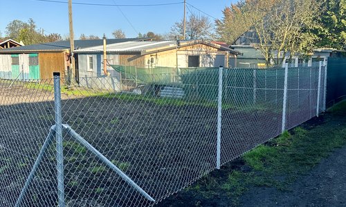 Diagonalgeflecht verzinkt mit Rohrpfosten verzinkt einbetoniert |