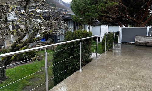 Fence type: | Drahtseilzaun mit Edelstahlpfosten mit Fussplatte |
