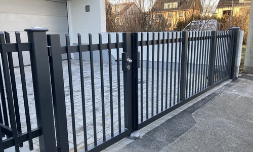 Fence type: | Palisaden Aluzaun einbetoniert |