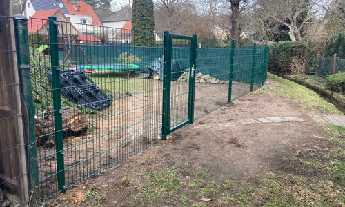 Doppelstabmatten leicht vorverzinkt und grün beschichtet mit Pfosten Vario einbetoniert |