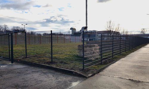 Doppelstabmatten schwer vorverzinkt und anthrazit beschichtet mit Pfosten Vario einbetoniert |
