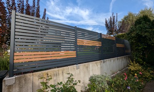 Projekt: | Aluminium Sichtschutz Modern Line in anthrazit und Eichenoptik |