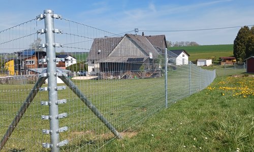 Fence type: | Knotengitter Torus, engmaschig mit Rohrpfosten verzinkt einbetoniert |