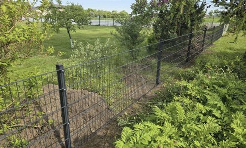 Doppelstabmatten leicht vorverzinkt und anthrazit beschichtet mit Pfosten Vario einbetoniert |